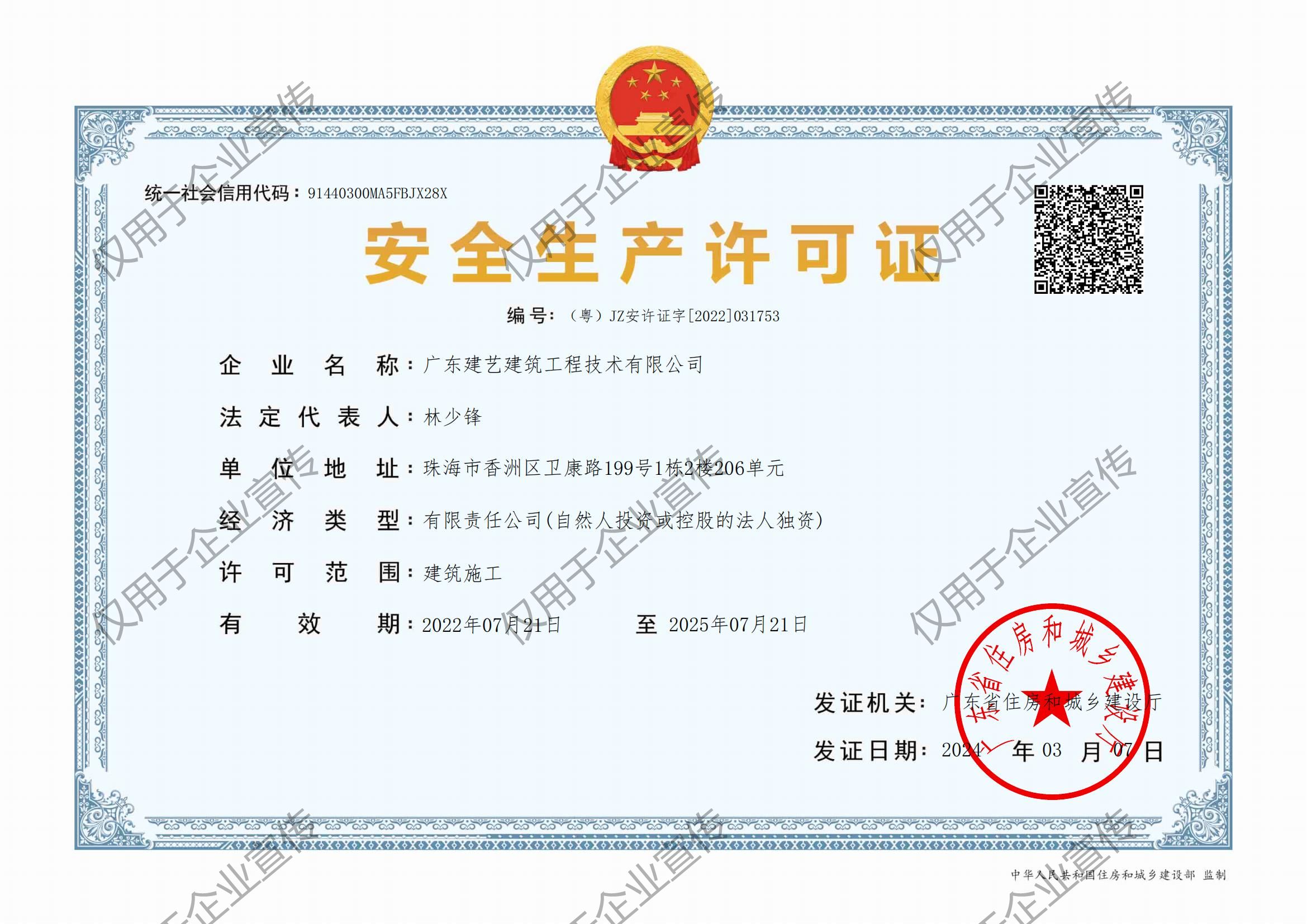 安全生产许可证(广发体彩-广发(中国),建造)