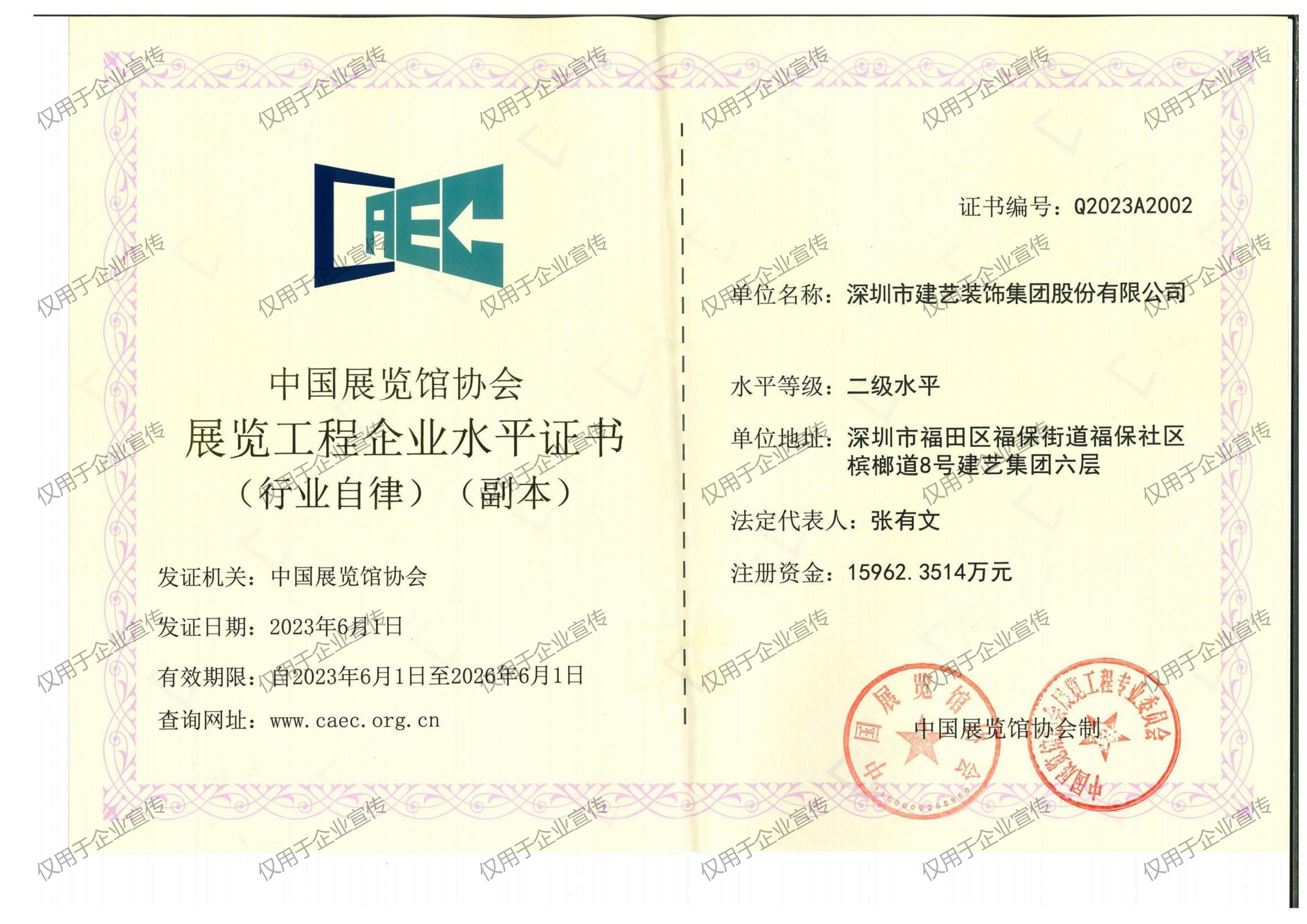 展览工程企业二级水平