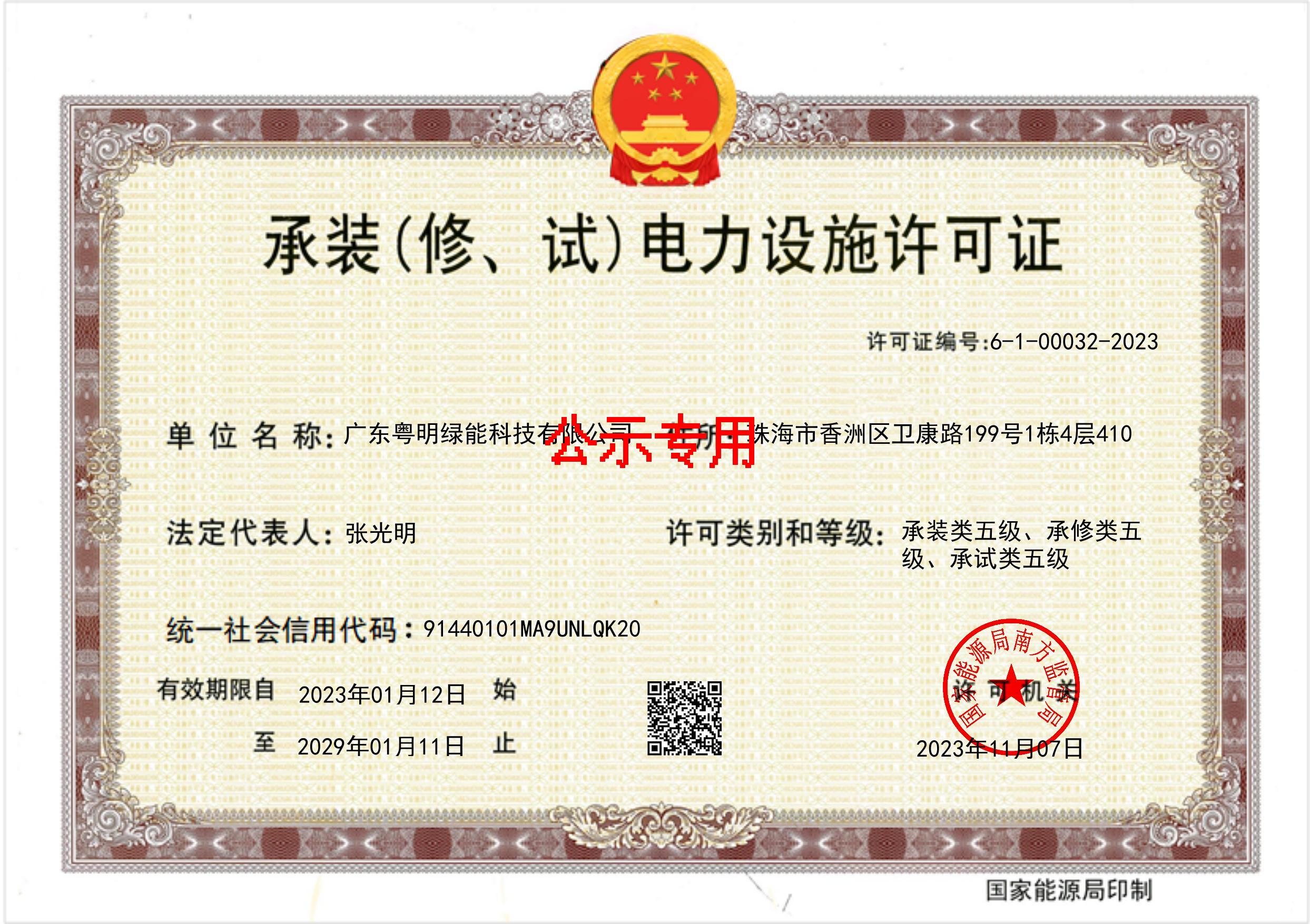 承装(修试)电力设施许可证