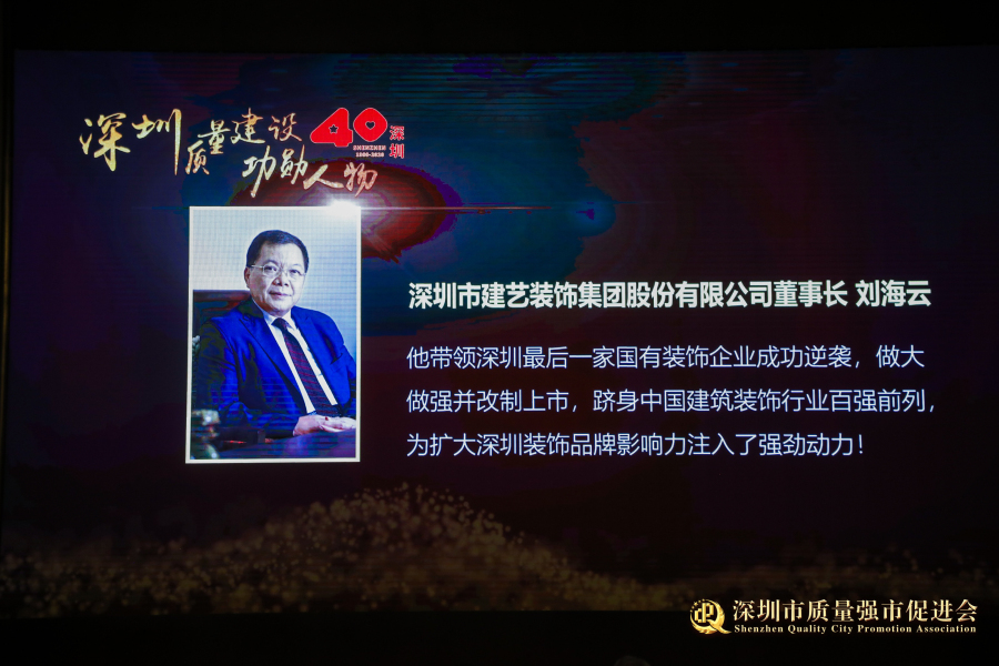 作为荣膺“功勋人物”的企业家之一,“深商风云人物”——刘海云主席长期以来深耕深圳质量建设。大会现场这样评价刘海云主席:“他带领深圳最后一家国有装饰企业成功逆袭,做大做强并改制上市,跻身中国建筑装饰行业百强前列,为扩大深圳装饰品牌影响力注入了强劲动力。”