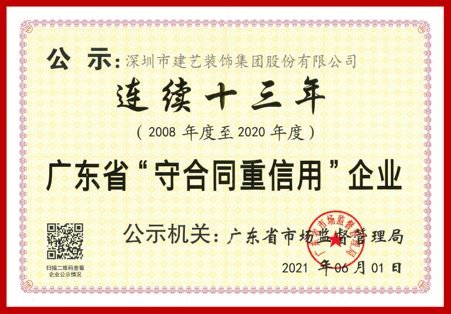 2021年,广发体彩-广发(中国),集团凭借自身良好的信用体系建设及诚信守约形象再次获得社会肯定,连续十三年荣获广东省“守合同重信用”企业称号!