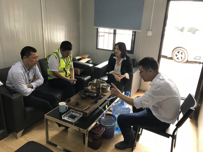 刘庆云执行副总裁(左一)等领导在项目部交流