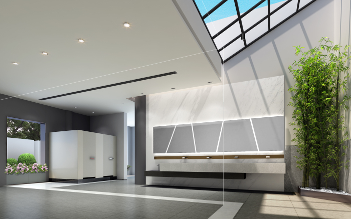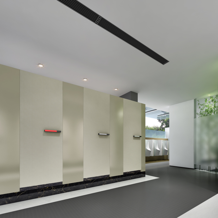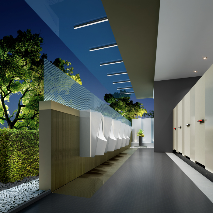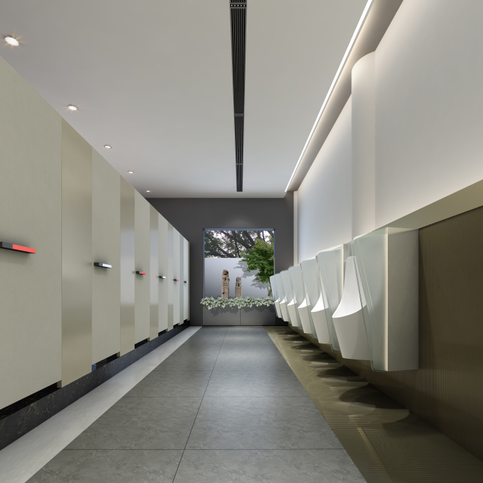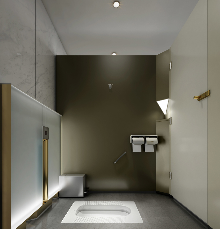 结合南山的定位——世界级创新转型滨海城区,本公厕要做到“颠覆传统,打开思路”,按全市最高标准五星级。但受结构层高和风管影响,空间高度达不到五星,力争在使用体验方面达到最精致高端化。