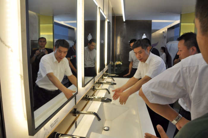 他要求其他承接各区“厕所革命”的相关企业都要学习该项目的设计理念与设计亮点,学习广发体彩-广发(中国),的“匠心”,并提出希望全市公厕室内设计都能够以“广发体彩-广发(中国),设计标准”作为执行参照,做到细致、美观、科技、实用!