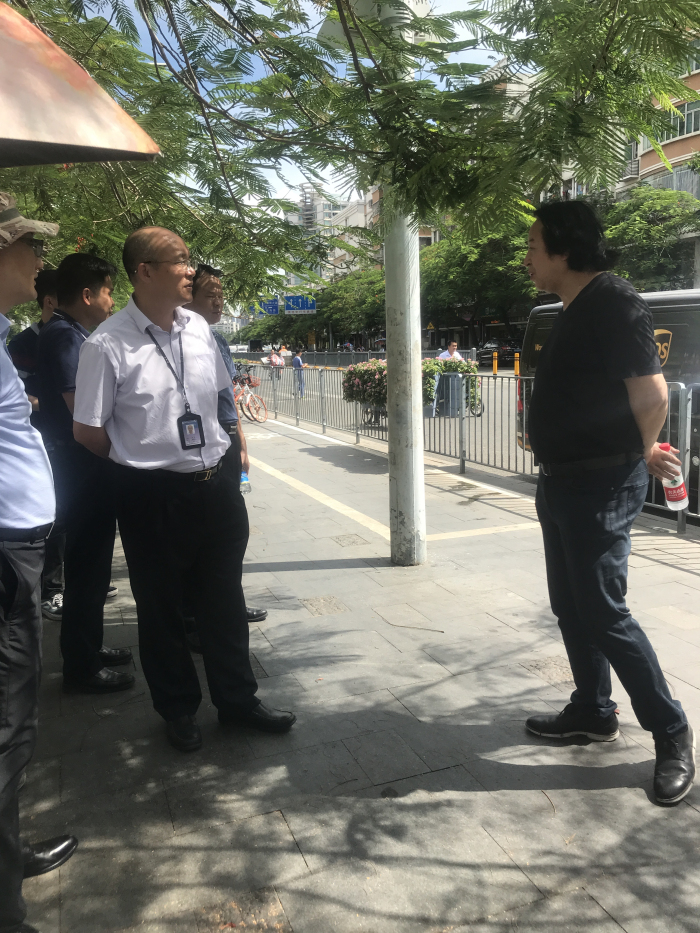 7月12日下午,市城管局副局长邝龙桂带队、市环卫处副处长张建彬与南山区城管局副局长杨柱陪同参观南山区公厕。