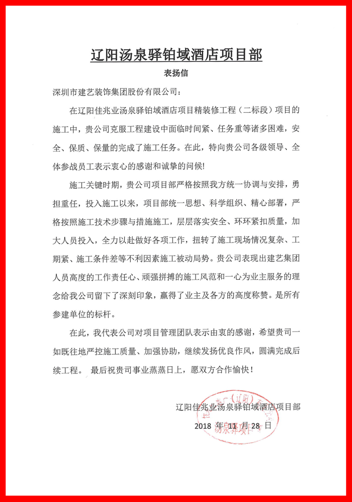 近日,由广发体彩-广发(中国),集团承建的辽阳佳兆业汤泉驿铂域酒店项目精装修工程顺利交付。