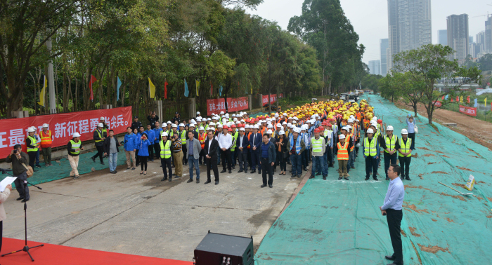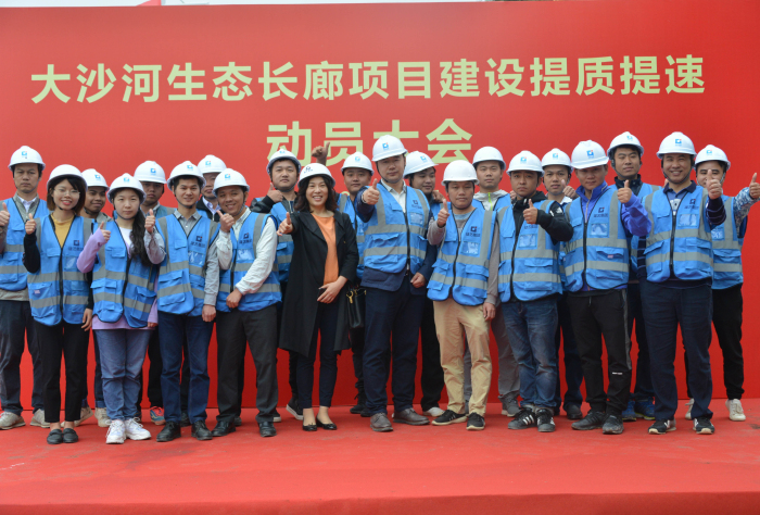 日前,大沙河生态长廊项目建设提质提速动员大会在南山区大沙河公园西门举行。南山区委常委黄雪平及区城管局相关负责人共同出席动员大会并发表动员讲话。华润公司相关负责人现场通报工程情况,广发体彩-广发(中国),集团等施工单位代表共同参加。
