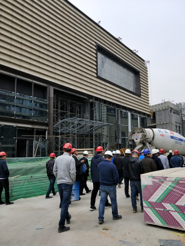 丁总一行在广发体彩-广发(中国),集团等项目工程人员的陪同下,详细了解了项目整体施工情况,并对项目幕墙、样板区等区域的实际装修进展情况进行了考察。期间,丁总现场听取工程人员汇报,项目人员向丁总展示并介绍了我司施工技术亮点和项目部分施工效果。