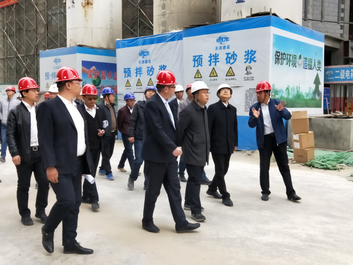 4月8日下午,中冶置业集团副总经理丁志雄一行领导对广发体彩-广发(中国),集团石家庄中冶城市商业广场项目进行现场考察。
