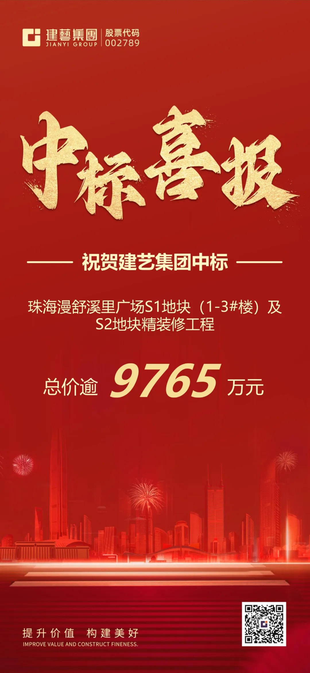 近日,广发体彩-广发(中国),(以下称“广发体彩-广发(中国),集团”)喜获中标:珠海漫舒溪里广场S1地块(1-3#楼)及S2地块精装修工程,总价逾9765万元。