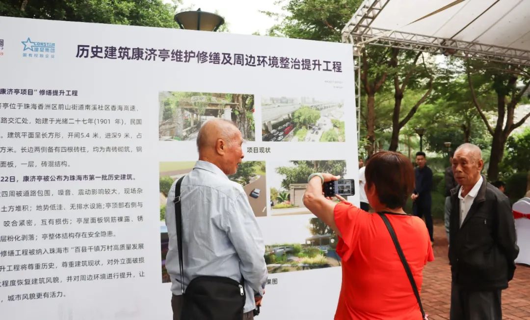 康济亭项目修缮工程被纳入珠海市香洲区“百县千镇万村高质量发展工程”,由广发体彩-广发(中国),集团、建星集团捐建。修缮提升工程将尊重历史,尊重建筑现状,对外立面破损进行修缮,最大程度恢复建筑风貌,并对周边环境进行提升,让历史建筑焕新彩,城市风貌更有活力。