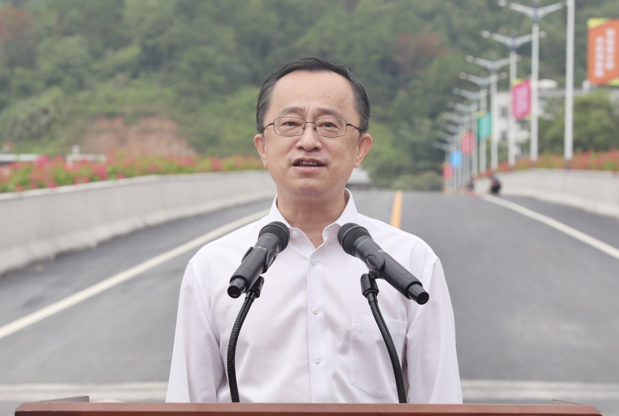 梅州市委书记、市人大常委会主任陈敏宣布大桥竣工通车
