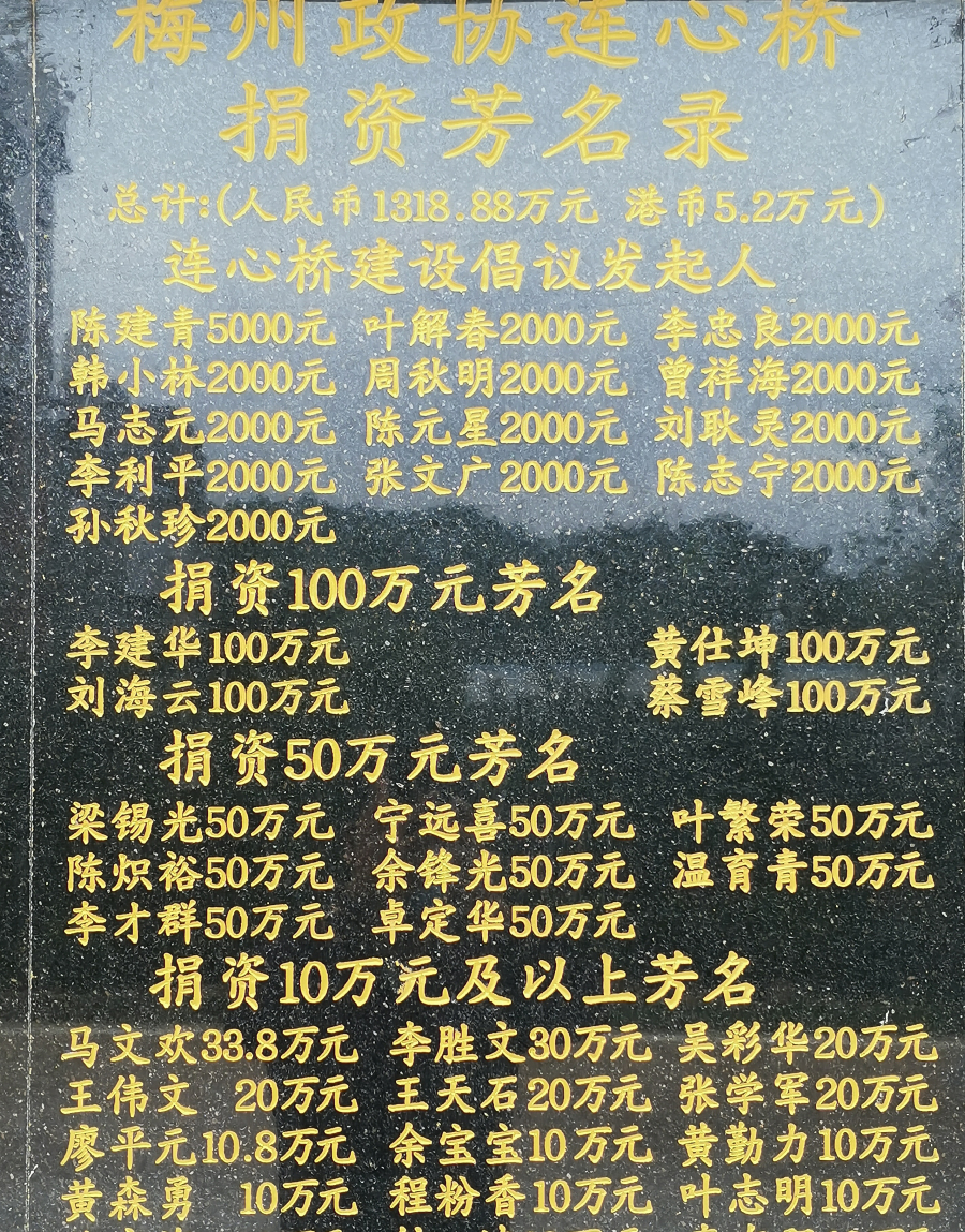 梅州政协连心桥捐资芳名录(局部)