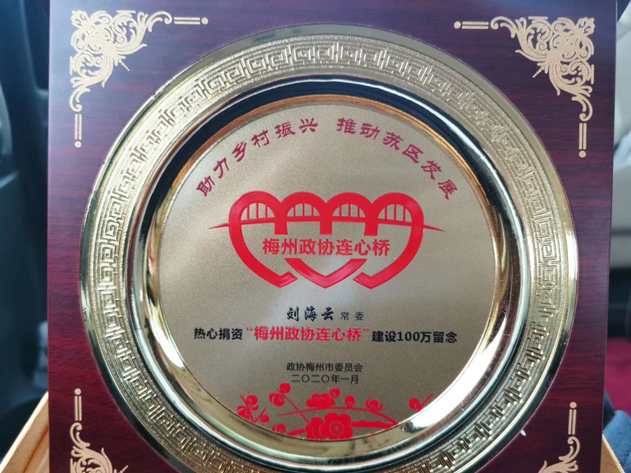 梅州政协连心桥捐资纪念牌——刘海云常委