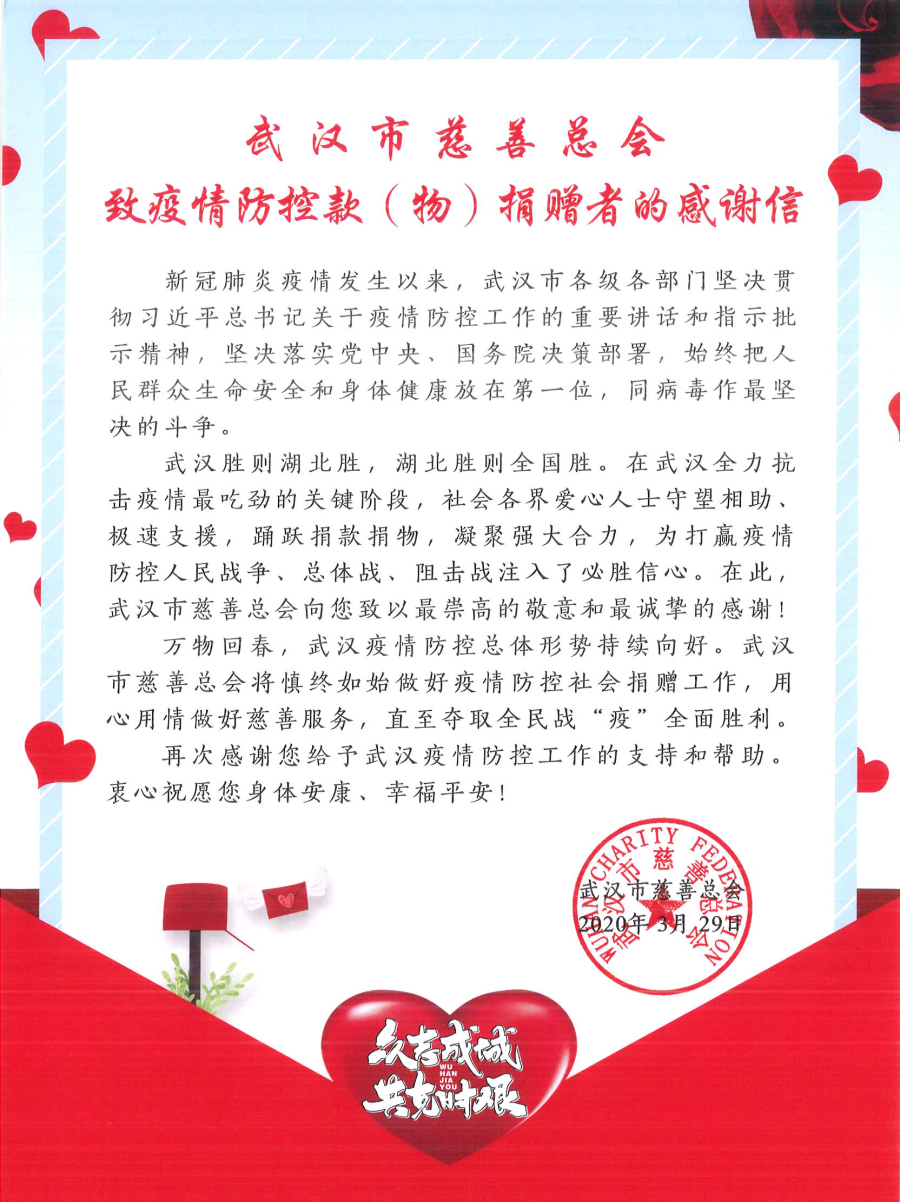 自疫情发生后,广发体彩-广发(中国),集团便上下一心,积极投身到抗疫工作中:第一时间捐款80万元紧急驰援武汉、梅州等地抗击疫情;联系多方渠道第一时间筹集口罩、消毒液等抗疫物资支援兴宁,解当地民众疫情防控燃眉之急;用10天时间凭30人完成可容纳300张床位的荆州市人民医院荆北新院应急备用病房改造,助力荆州“火神山医院”落地……在特殊的2020年,广发体彩-广发(中国),人努力践行着上市企业的社会责任,并竭尽所能为抗疫一线提供服务与帮助,用担当树立“深商抗疫”先锋表率。