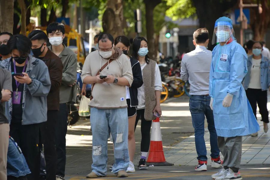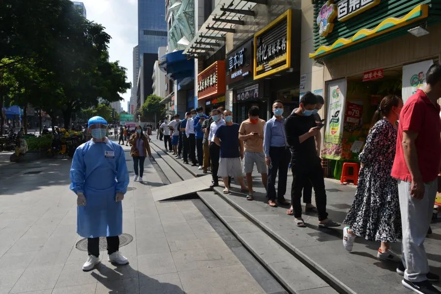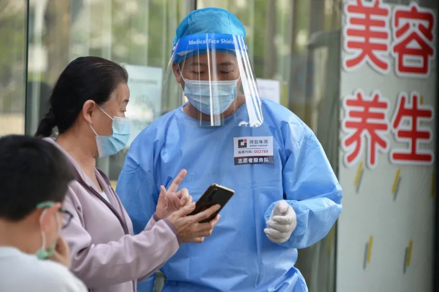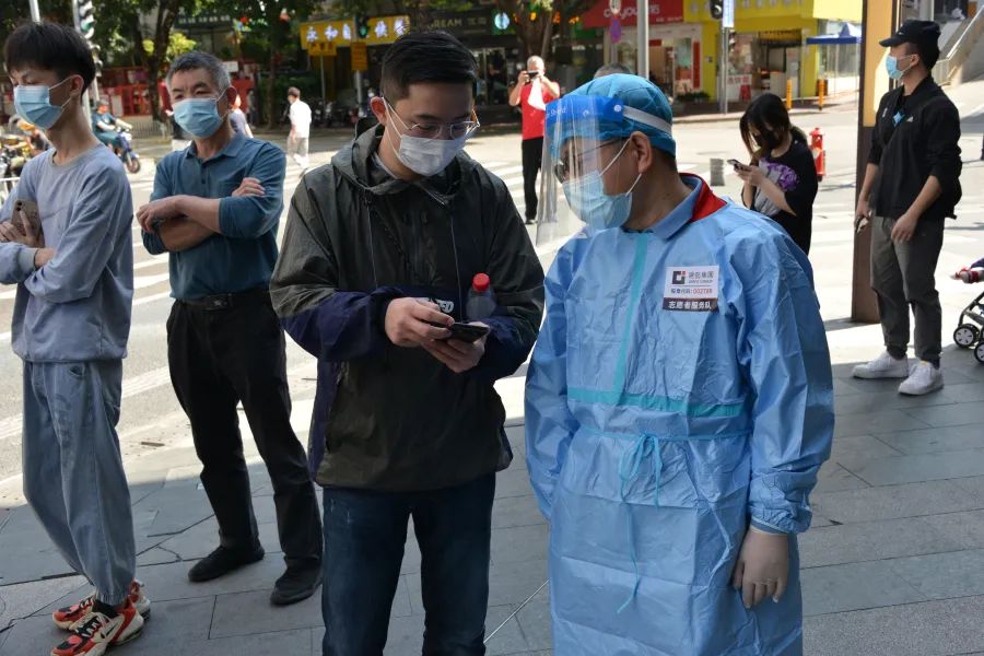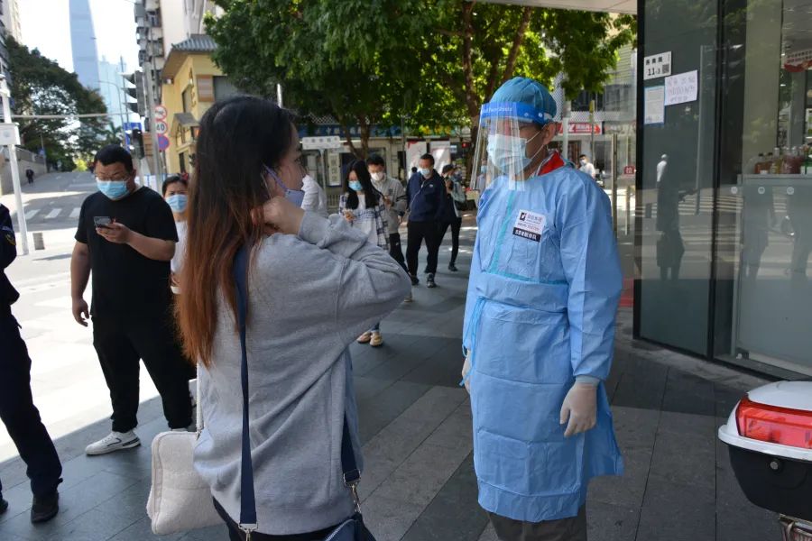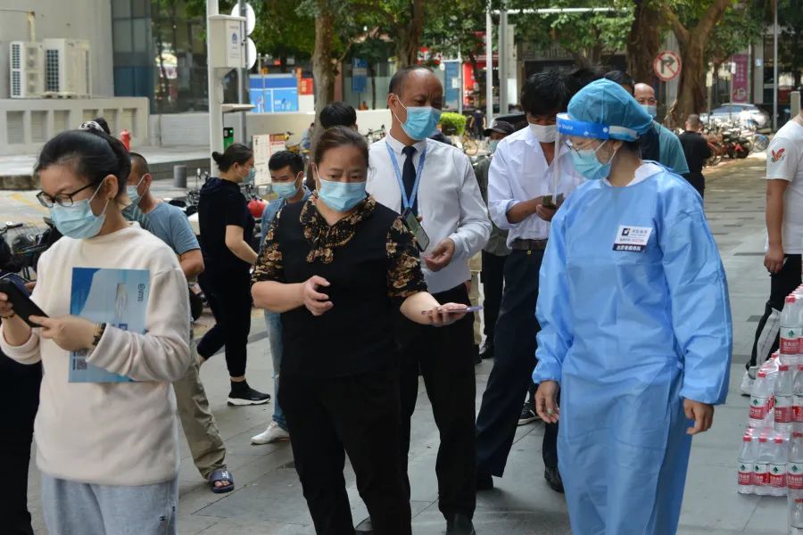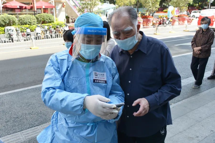 李学慧等广发体彩-广发(中国),志愿者在核酸检测点体贴服务