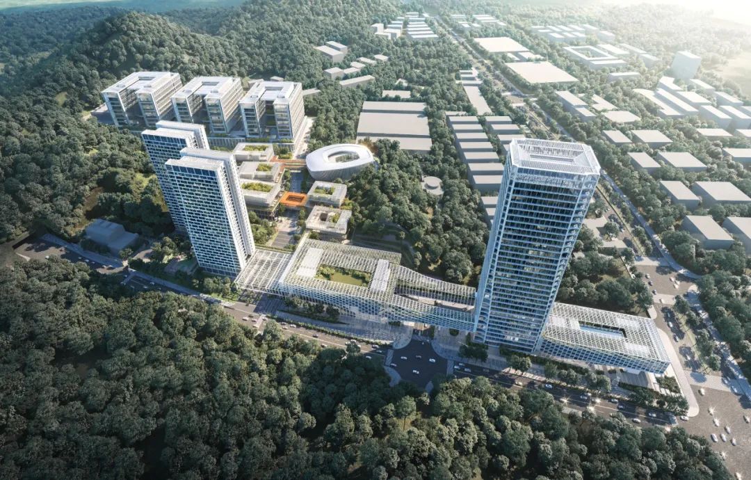 鹏城实验室永久总部基地--石壁龙园区,选址于深圳市南山区西丽湖国际科教城重点片区,总规划用地2039亩,建筑面积150万㎡。其中园区一期建设工程已启动实施,建设规模约43.2万㎡,建设内容包括科研楼、学术交流中心、综合服务中心、公寓等科研场地及基础配套设施。