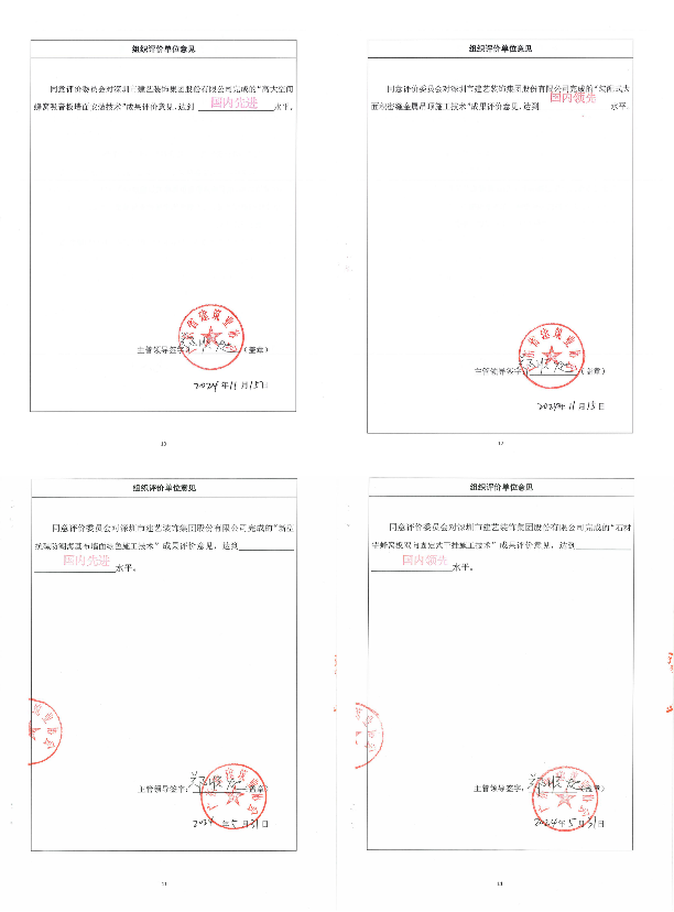 此外,广发体彩-广发(中国),集团立足为项目施工解决重难点问题,自主创新研发的4项科技成果经广东省建筑业协会评价委员会评定:《装配式大面积密缝金属吊顶施工技术》《石材铝蜂窝板双向固定式干挂施工技术》达到国内领先水平,《高大空间蜂窝吸音板墙面安装技术》《新型抗碱防潮海基布墙面绿色施工技术》达到国内先进水平。